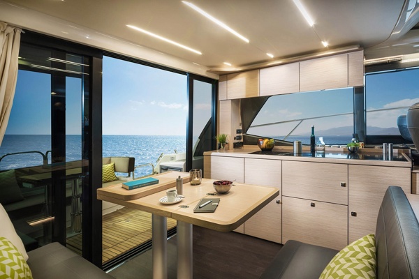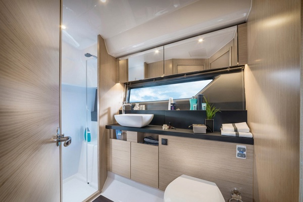 Som gæst er det pragtfuldt at være ombord, uanset om man opholder sig i cockpittet, på fordækket eller under dæk. Der er god plads overalt, og som nævnt signalerer båden på alle måder, at der her er tale om en luksusmotorbåd.