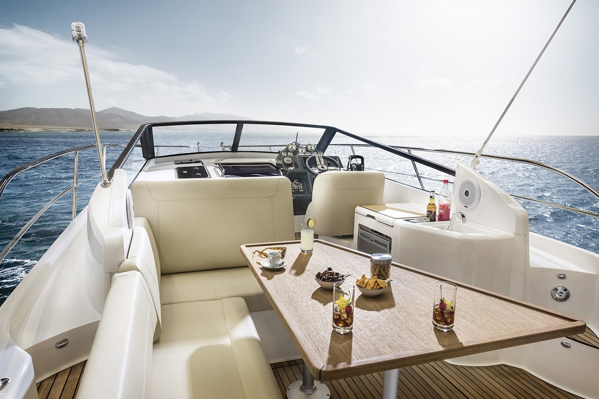 Toilettank, Lænsepumpe, Badeplatform, Badestige, 220V landstrøm, Batterier, Batterilader, Bruser i cockpit, Trykvandssystem, Vinduesvisker, Wetbar m/håndvask, Cockpitbord , Ekkolod, Ildslukker, Salonbord, Lys i cockpit, kopholder rustfri i cockpit, Ankerrulle m/ holder, Læselamper, El keramisk komfur, Køleskab, Motorrums udluftning, Navigationslys, Fartmåler, Signalhorn, Anker, Søgelænder, Toilet, Varmtvands beholder, Varmtvandsbeholder.