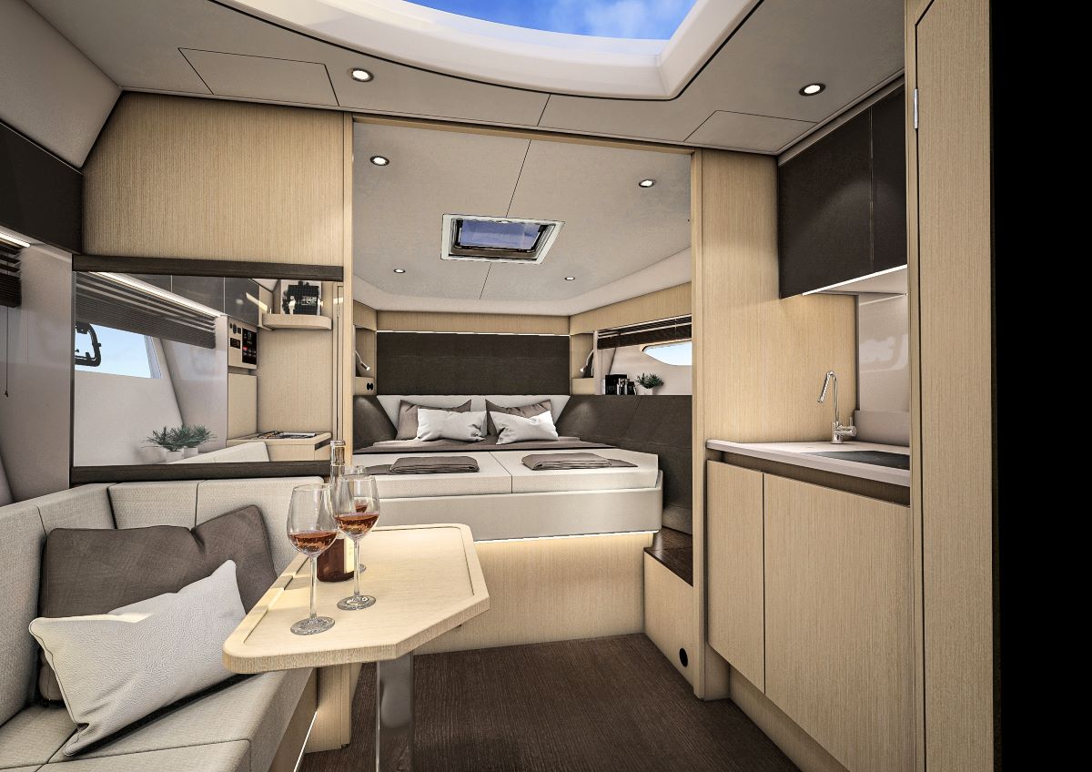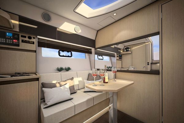NYHED! Fantastisk ny motorbåd fra Bavaria, med et højt standard udstyrs niveau. Båden kan konfigureres med diesel el. benzin motorer, i begge versioner mulighed for joystick kontrol. 2 store sovekabiner, meget rummelig salon og pantry, og et veldisponeret cockpit med nye spændende design løsning.