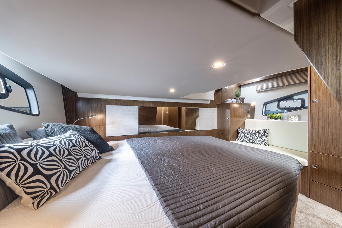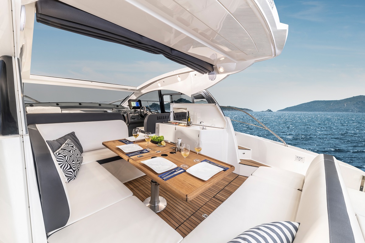 NYHED! Fantastisk ny motorbåd fra Bavaria, med et højt standard udstyrs niveau. Båden kan konfigureres med diesel el. benzin motorer, i begge versioner mulighed for joystick kontrol. 2 store sovekabiner, meget rummelig salon og pantry, og et veldisponeret cockpit med nye spændende design løsning.